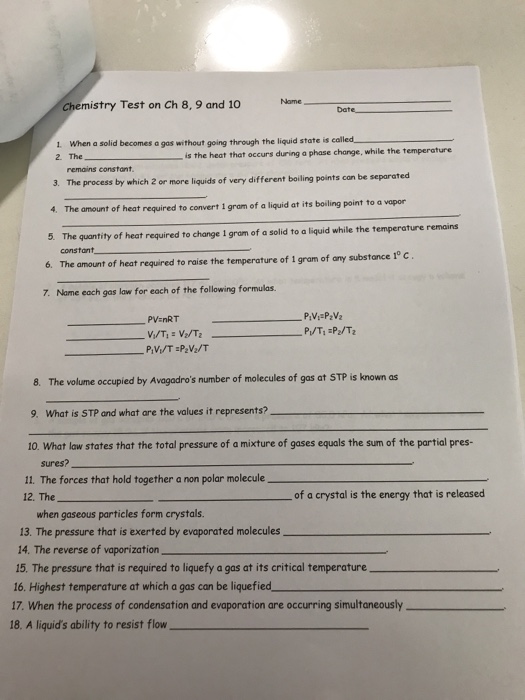 Solved Chemistry Test On Ch 8 9 And 10 Name Date This Test Chegg Com